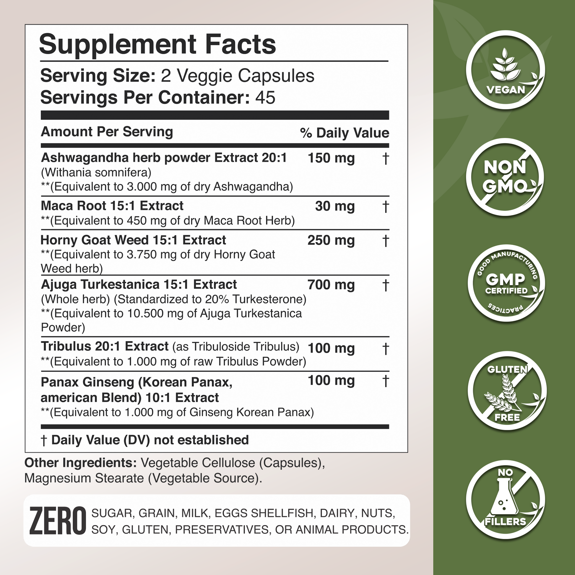 What does Ashwagandha, Maca Root, Horny Goat Weed, Turkesterone, Tribulus & Ginseng benefit?