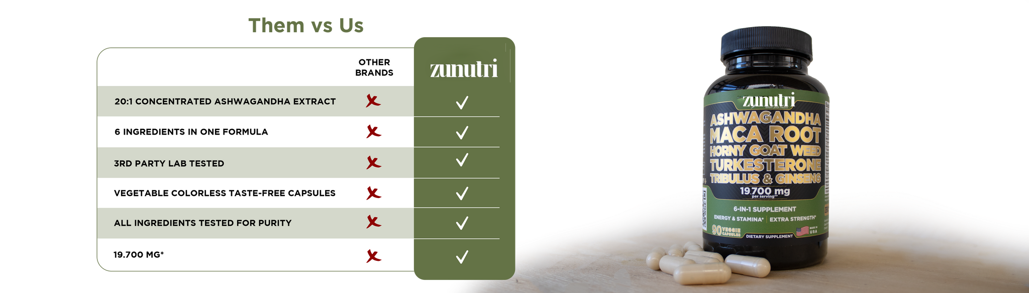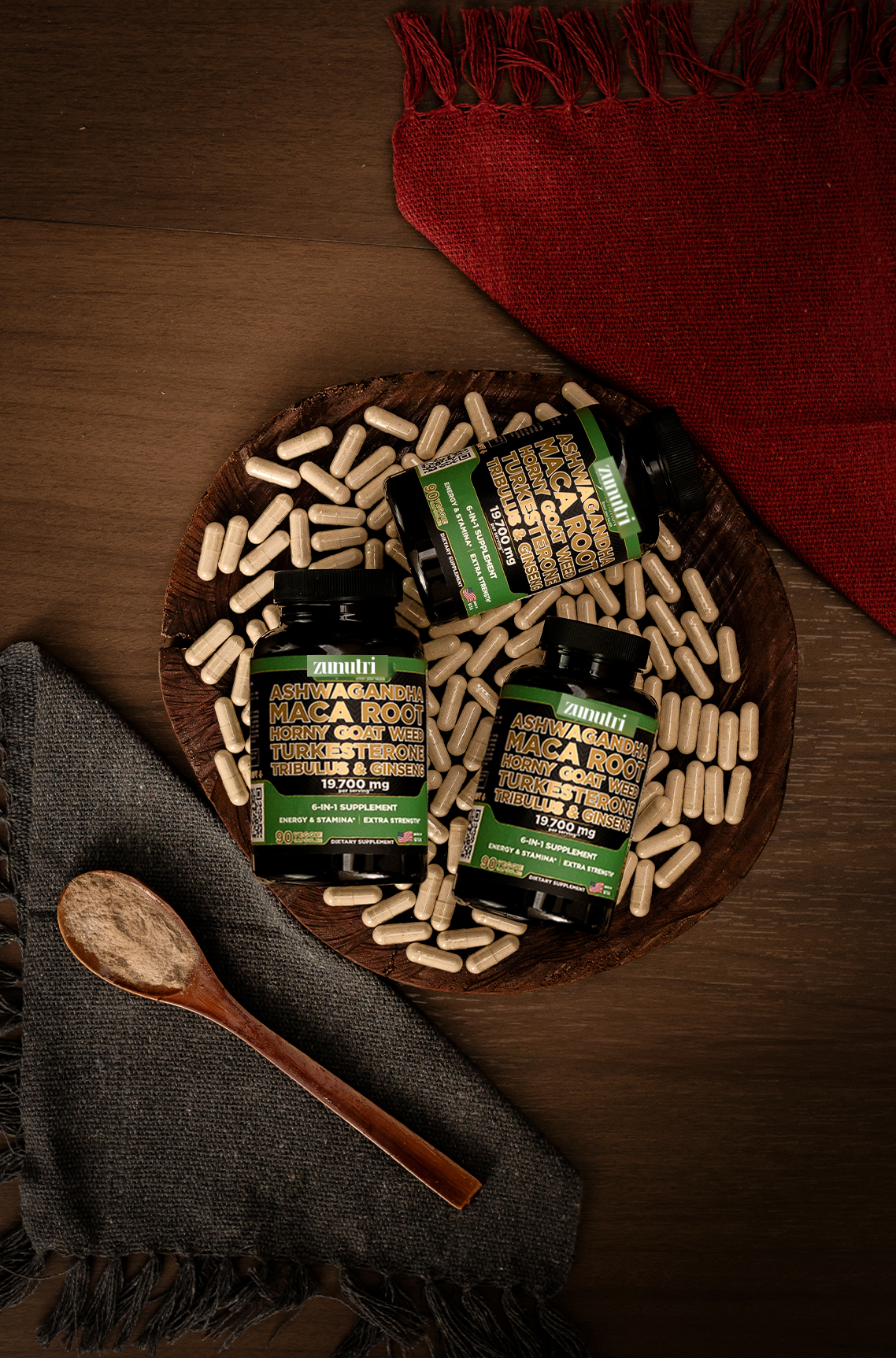 Gade Nutrition's Ashwagandha root is wild-harvested from the lush foothills of Central India. This herb is known for many as the "Indian Ginseng”. We assure that Ashwagandha used in our supplement is produced using a state-of-the-art extraction process to ensure the utmost purity, quality, and potency. This supplement is enriched with a potent blend of Maca Root, Horny Goat Weed, Turkesterone, Tribulus, and Ginseng.